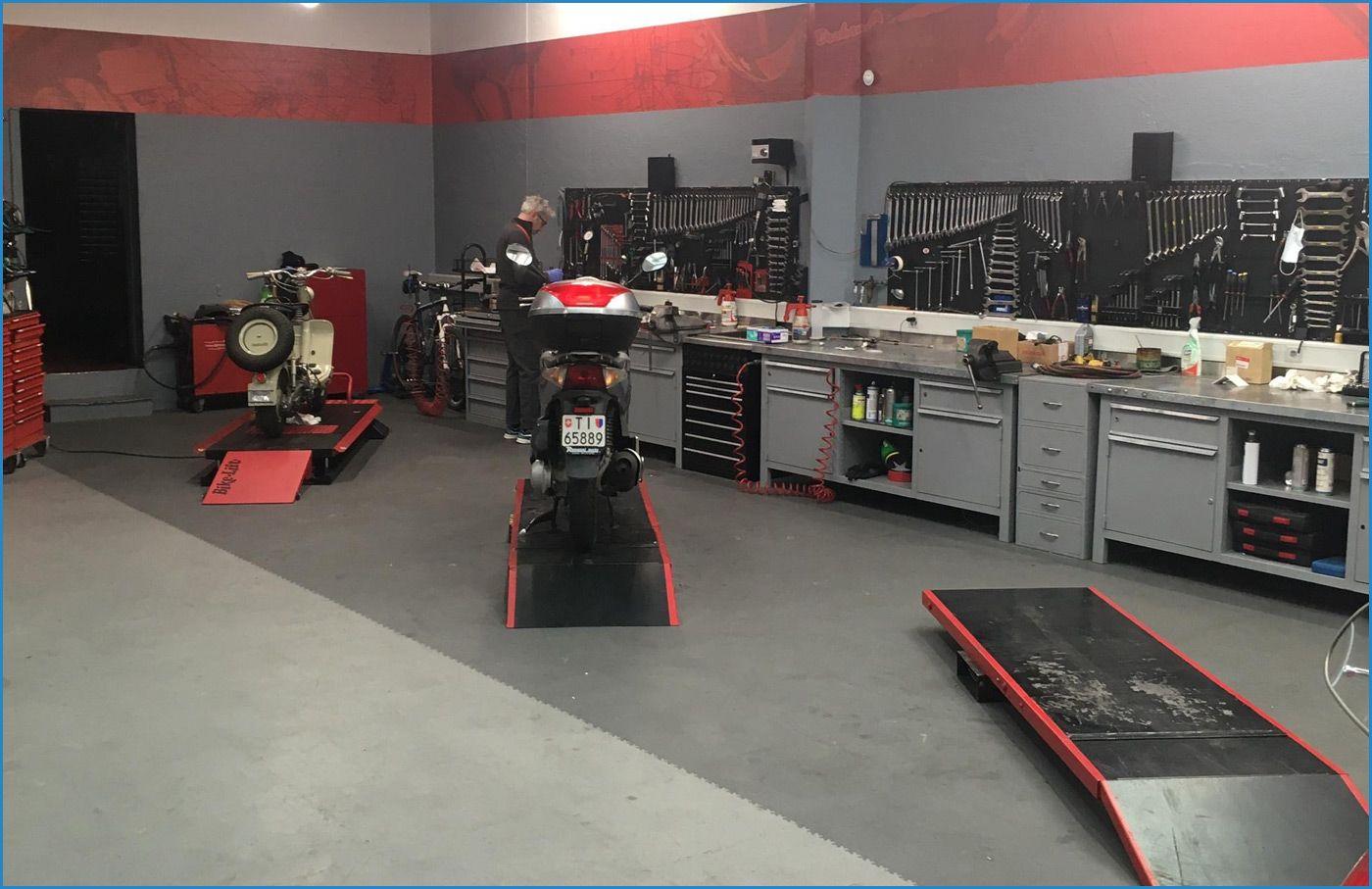La nostra officina è attrezzata con quattro sollevatori, uno per ogni postazione di lavoro.